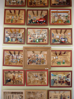 А это картинки, изображающие рабочее пространство разных профессий: пекарня, автомастерская, хлев или офис )). Их размер не превышает размер листа A4, а количество мелких деталек впечатляет. Цены, правда, тоже не отстают - 80-100 евро за одну картинку.