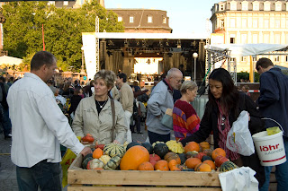 Повсюду в Висбадене продаются вот такие декоративные тыковки по 0,5 - 2 евро. Наверное, к Halloween.